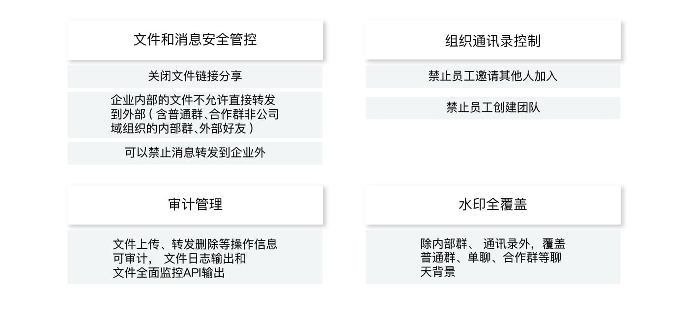 1.文件安全:可以配置文件禁止下載、禁止轉發到企業外
